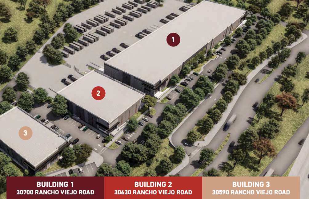 The project transformed an aging 123,000 SF industrial/manufacturing facility into a modern Class A industrial campus with direct I-5 freeway frontage. The redevelopment replaced the former building with three new buildings totaling approximately 136,310 SF (101k SF, 20k SF, and 14k SF), delivering 34 dock-high doors and flexible design options — including the potential for two warehouses and an auto dealership showroom.