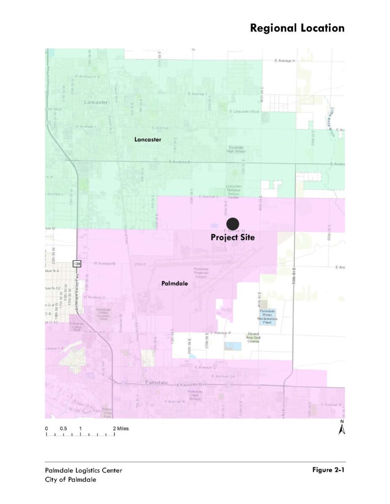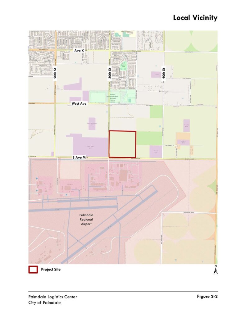 The Palmdale Logistics Center is located northeast of the intersection of 30th Street East and East Avenue M/Columbia Way in Palmdale, Los Angeles County, encompassing approximately 150.18 acres.