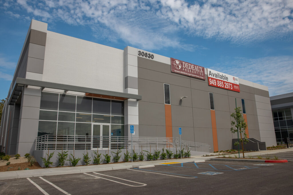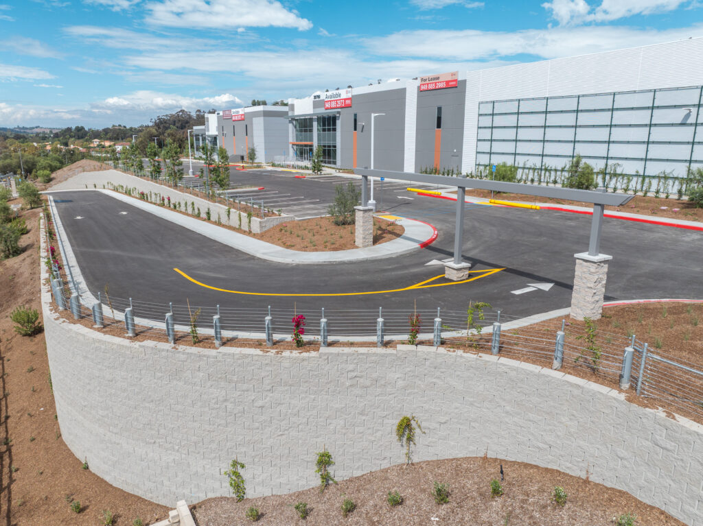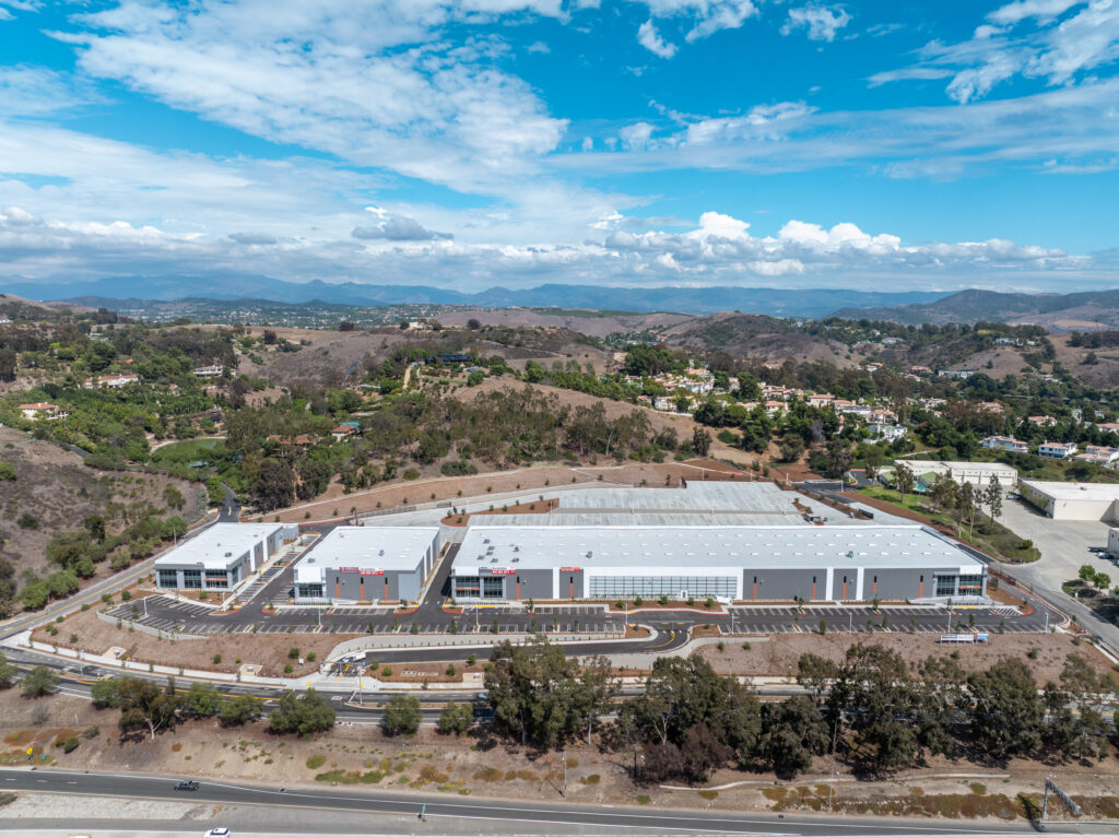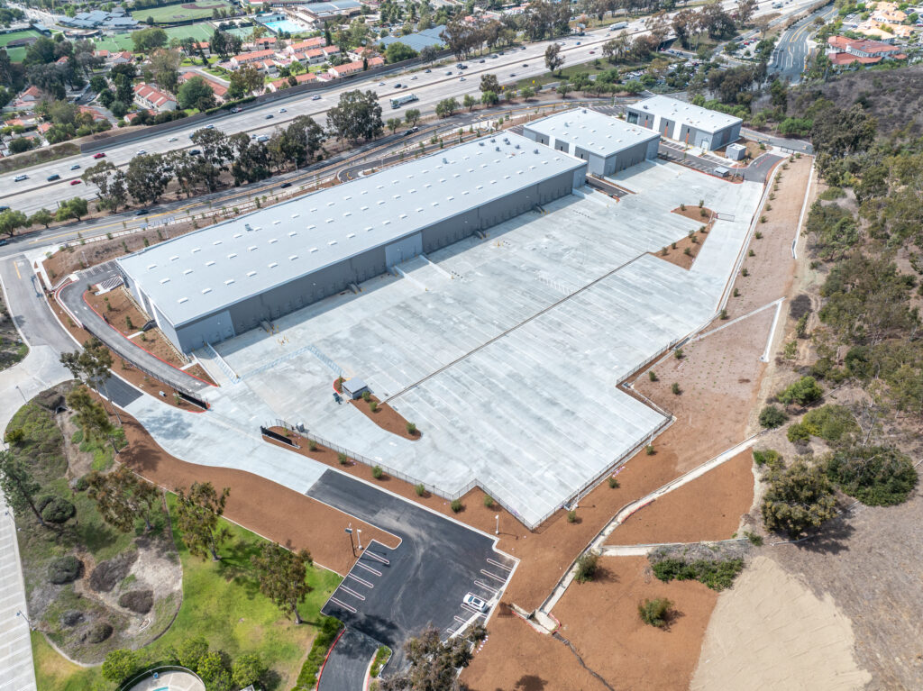 The project transformed an aging 124,352 SF industrial/manufacturing facility into a modern Class A industrial campus with direct I-5 freeway frontage. The redevelopment replaced the former building with three new buildings totaling approximately 136,401 SF (101k SF, 20k SF, and 14k SF), delivering 34 dock-high doors and flexible design options — including approval the potential for two warehouses and an auto dealership showroom.
