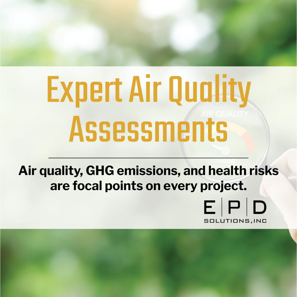 • Air Quality Analysis for CEQA/NEPA Documentation • Greenhouse Gas Analysis for CEQA Compliance • Construction and Operational Health Risk Assessments • Energy Demand Analyses CLICK HERE to learn more about EPD Technical Services