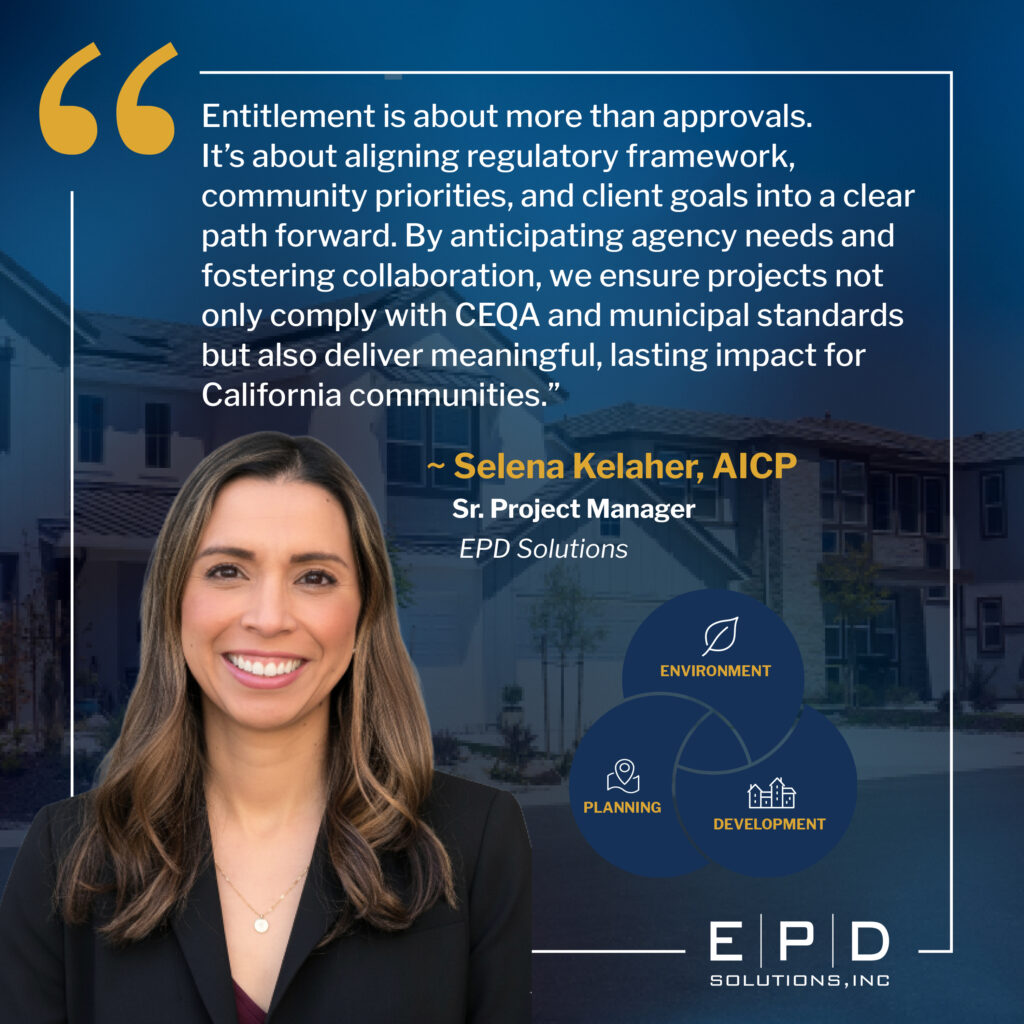 As Senior Project Manager at EPD Solutions, Selena Kelaher, AICP, navigates the toughest of entitlement challenges and her philosophy is clear: “By anticipating agency needs and fostering collaboration, we ensure projects not only comply with CEQA and municipal standards but also deliver meaningful, lasting impact for California communities.” Selena brings a decade of experience bridging […]
